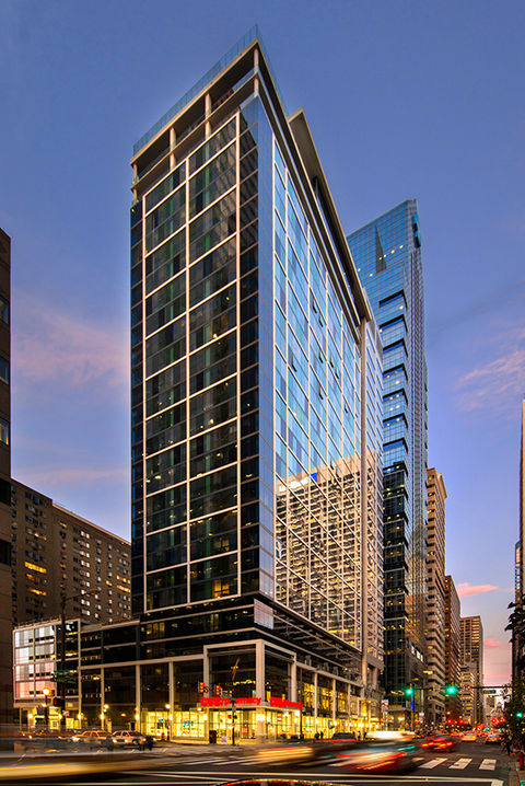 1919 Market Street is a 460,000 SF mixed-use high-rise apartment building on a 0.78 acre previously vacant lot. The building includes a 28-story tower with 321 rental housing units, first floor retail, second