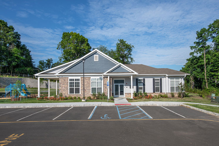 The Place at Marlboro is a multi-building affordable housing project that received tax credit funding through NJHMFA. The project includes 154 apartment units spread throughout nine residential structures, plus a community building. The design responded to the client’s request with their property management style and mission statement put forward: Providing more pride of place within each unit, and less common space as well, each unit enjoys a private, direct entry at grade. BartonPartners developed the site plan design along with the architecture to respond to a gently sloping site.